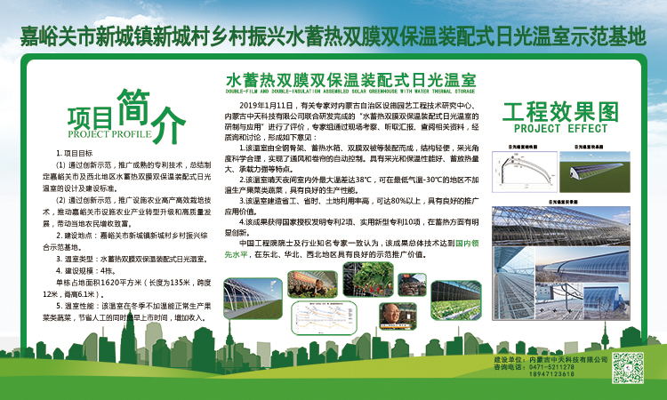 為深入實施鄉村振興戰略,促進農民持續增收以及推進本地區農業轉型與高質量發展,2020年嘉峪關市委市政府主要領導及相關部門負責人在一期示范的基礎上,通過科學決策再次引進“水蓄熱雙膜雙保溫裝配式日光溫室”二期項目,該項目在各部門共同努力下,于2020年10月16日順利通過驗收并正式投入運營,該項目將實現以下主要目標: